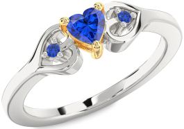 Diamond Blue Sapphire Platinum & Yellow Gold Heart Three Stone Engagement Ring