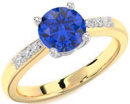Diamond Blue Sapphire Platinum & Yellow Gold Round Solitaire Engagement Ring