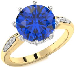 Diamond Blue Sapphire Platinum & Yellow Gold Round Solitaire Engagement Ring