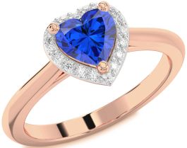 Diamond Blue Sapphire Rose Gold Heart Halo Engagement Ring