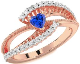 Diamond Blue Sapphire Rose Gold Heart Promise Ring