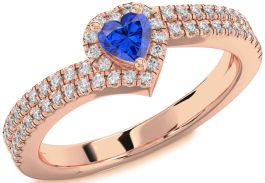 Diamond Blue Sapphire Rose Gold Heart Pave Promise Ring
