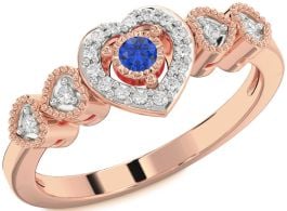 Diamond Blue Sapphire Rose Gold Heart Promise Ring