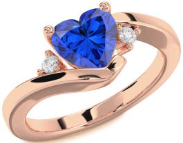 Diamond Blue Sapphire Rose Gold Heart Three Stone Engagement Ring