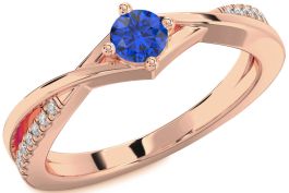 Diamond Blue Sapphire Rose Gold Round Promise Ring