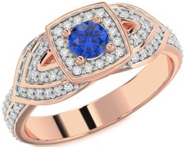 Diamond Blue Sapphire Rose Gold Halo Round Pave Promise Ring