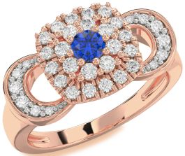 Diamond Blue Sapphire Rose Gold Halo Round Promise Ring