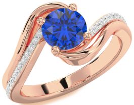 Diamond Blue Sapphire Rose Gold Round Solitaire Engagement Ring