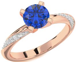 Diamond Blue Sapphire Rose Gold Round Solitaire Engagement Ring