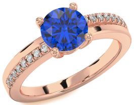 Diamond Blue Sapphire Rose Gold Round Solitaire Engagement Ring