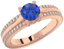 Diamond Blue Sapphire Rose Gold Round Solitaire Engagement Ring