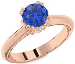 Diamond Blue Sapphire Rose Gold Round Solitaire Engagement Ring