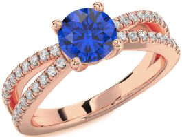 Diamond Blue Sapphire Rose Gold Round Solitaire Pave Engagement Ring