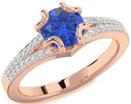 Diamond Blue Sapphire Rose Gold Round Solitaire Pave Engagement Ring