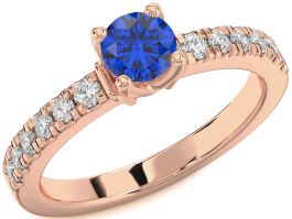 Diamond Blue Sapphire Rose Gold Round Solitaire Engagement Ring
