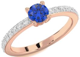 Diamond Blue Sapphire Rose Gold Round Solitaire Pave Engagement Ring