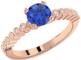 Diamond Blue Sapphire Rose Gold Round Solitaire Engagement Ring