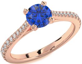 Diamond Blue Sapphire Rose Gold Round Solitaire Pave Engagement Ring