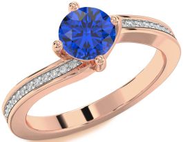 Diamond Blue Sapphire Rose Gold Round Solitaire Pave Engagement Ring