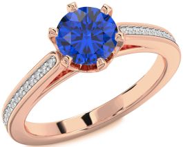 Diamond Blue Sapphire Rose Gold Round Solitaire Pave Engagement Ring