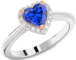 Diamond Blue Sapphire Rose Gold Silver Heart Halo Engagement Ring