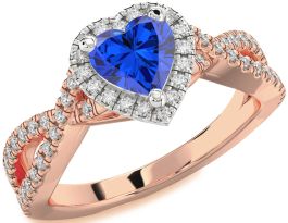 Diamond Blue Sapphire Rose Gold Silver Heart Halo Pave Engagement Ring