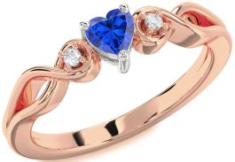 Diamond Blue Sapphire Rose Gold Silver Heart Knot Three Stone Engagement Ring