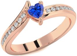 Diamond Blue Sapphire Rose Gold Silver Heart Pave Promise Ring