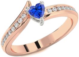 Diamond Blue Sapphire Rose Gold Silver Heart Pave Promise Ring