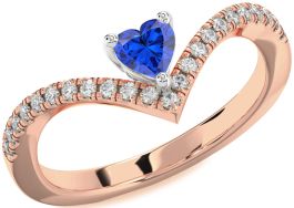 Diamond Blue Sapphire Rose Gold Silver Heart Pave Promise Ring