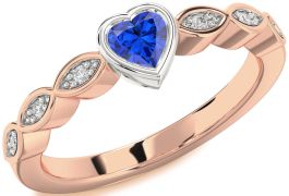 Diamond Blue Sapphire Rose Gold Silver Heart Promise Ring