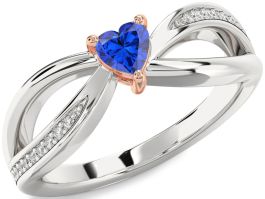Diamond Blue Sapphire Rose Gold Silver Heart Promise Ring