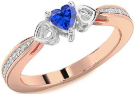 Diamond Blue Sapphire Rose Gold Silver Heart Promise Ring