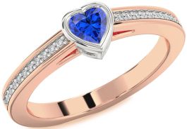 Diamond Blue Sapphire Rose Gold Silver Heart Pave Promise Ring