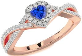 Diamond Blue Sapphire Rose Gold Silver Heart Pave Promise Ring