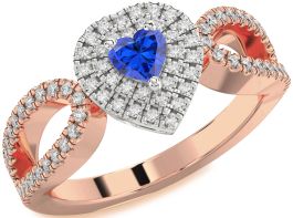 Diamond Blue Sapphire Rose Gold Silver Heart Pave Promise Ring