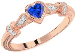 Diamond Blue Sapphire Rose Gold Silver Heart Promise Ring