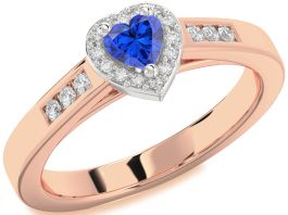 Diamond Blue Sapphire Rose Gold Silver Heart Promise Ring