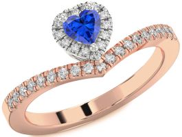 Diamond Blue Sapphire Rose Gold Silver Heart Pave Promise Ring