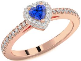 Diamond Blue Sapphire Rose Gold Silver Heart Pave Promise Ring