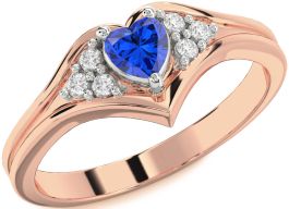 Diamond Blue Sapphire Rose Gold Silver Heart Promise Ring