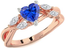 Diamond Blue Sapphire Rose Gold Silver Heart Engagement Ring