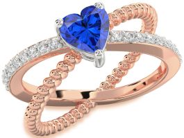Diamond Blue Sapphire Rose Gold Silver Heart Solitaire Pave Engagement Ring