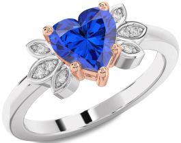Diamond Blue Sapphire Rose Gold Silver Heart Solitaire Engagement Ring