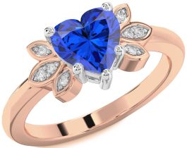 Diamond Blue Sapphire Rose Gold Silver Heart Solitaire Engagement Ring