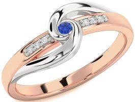 Diamond Blue Sapphire Rose Gold Silver Knot Round Promise Ring