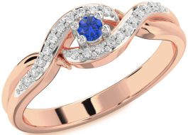 Diamond Blue Sapphire Rose Gold Silver Knot Round Pave Promise Ring