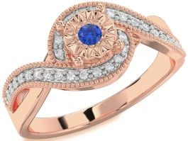 Diamond Blue Sapphire Rose Gold Silver Round Promise Ring