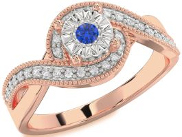 Diamond Blue Sapphire Rose Gold Silver Round Promise Ring