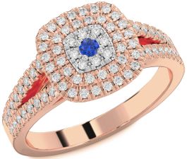 Diamond Blue Sapphire Rose Gold Silver Halo Round Pave Promise Ring